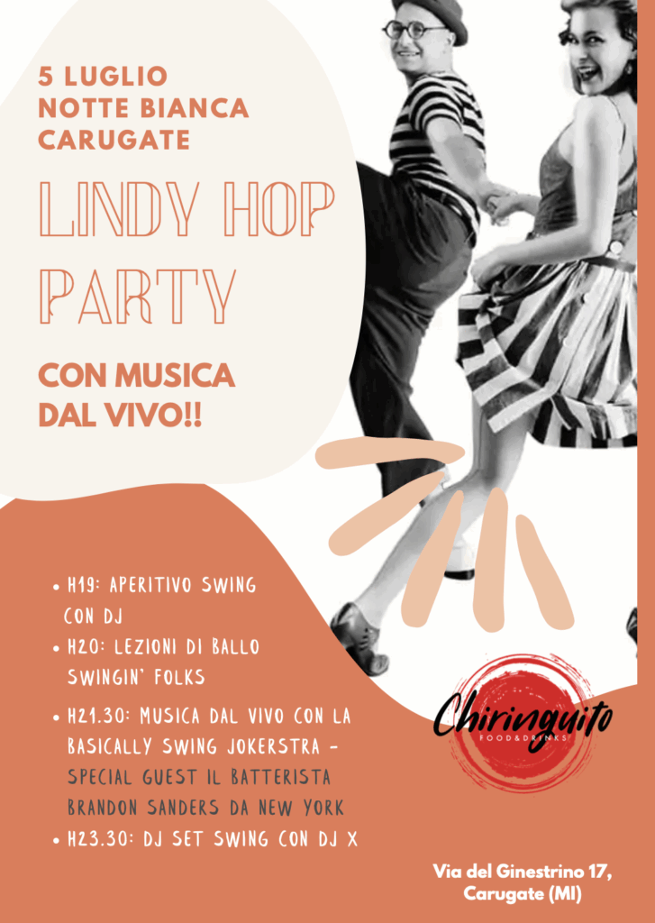 Sabato 5 Luglio il Chiringuito di Carugate farà un salto indietro nel tempo a ritmo di swing e folks, per ballare e imparare a muoversi a ritmo di musica.